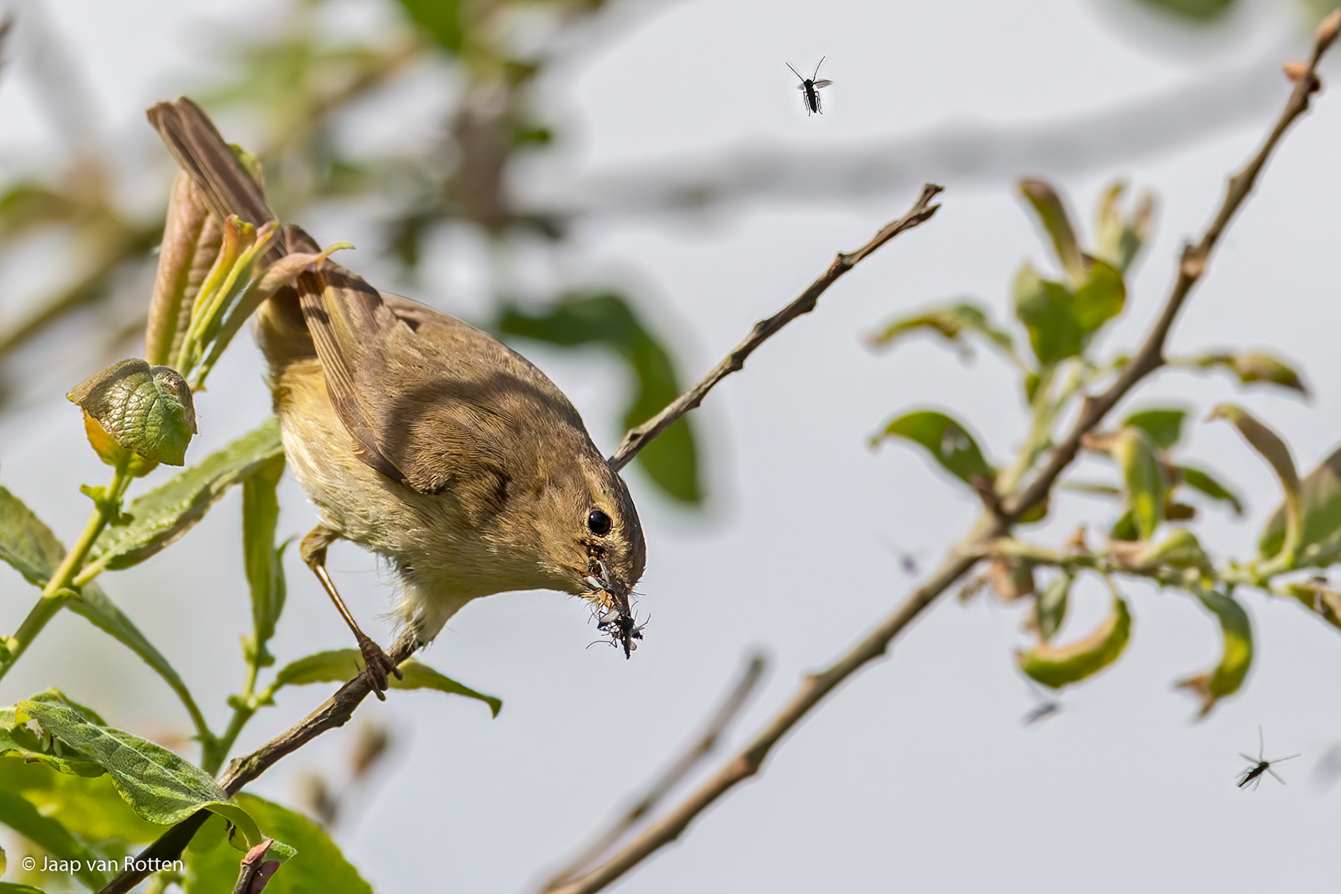 De boerenzwaluw vangt een insect